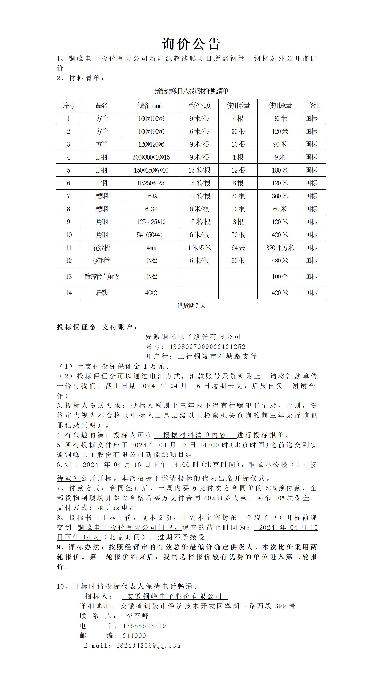 william威廉中文官网股份有限公司新项目八线钢材询价公告