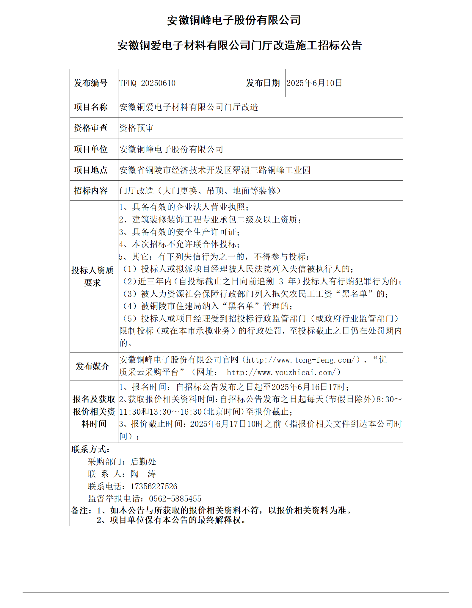 william威廉中文官网 (铜爱电子公司门厅改造招标公告)_01