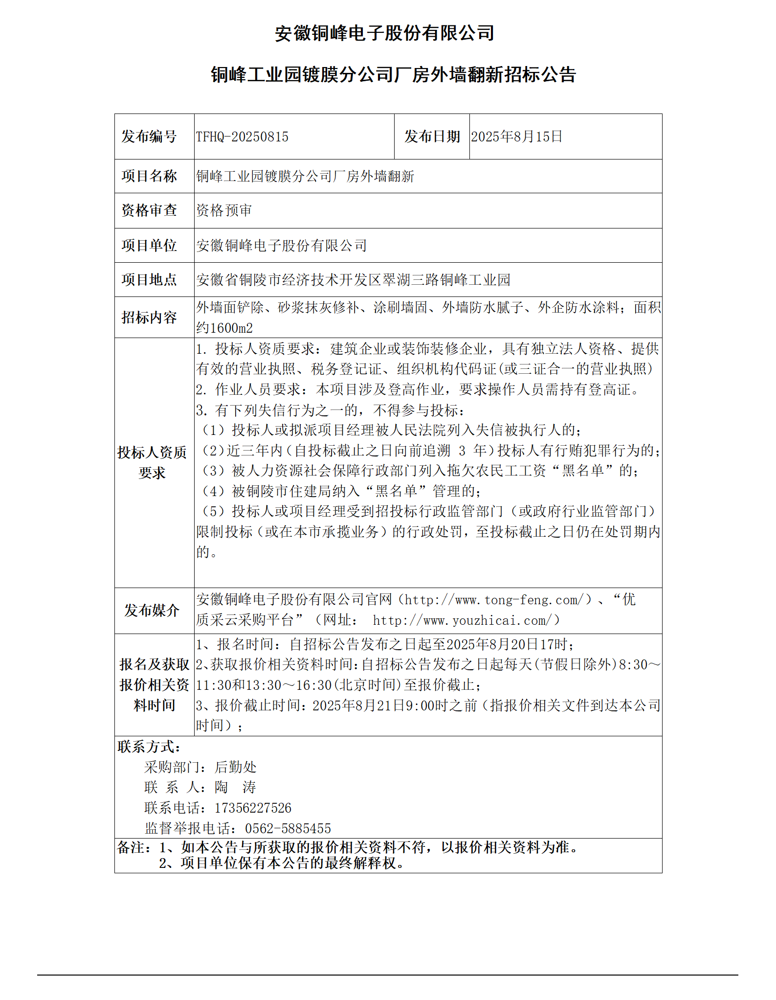 william威廉中文官网 (镀膜分公司厂房外墙翻新招标公告)_01