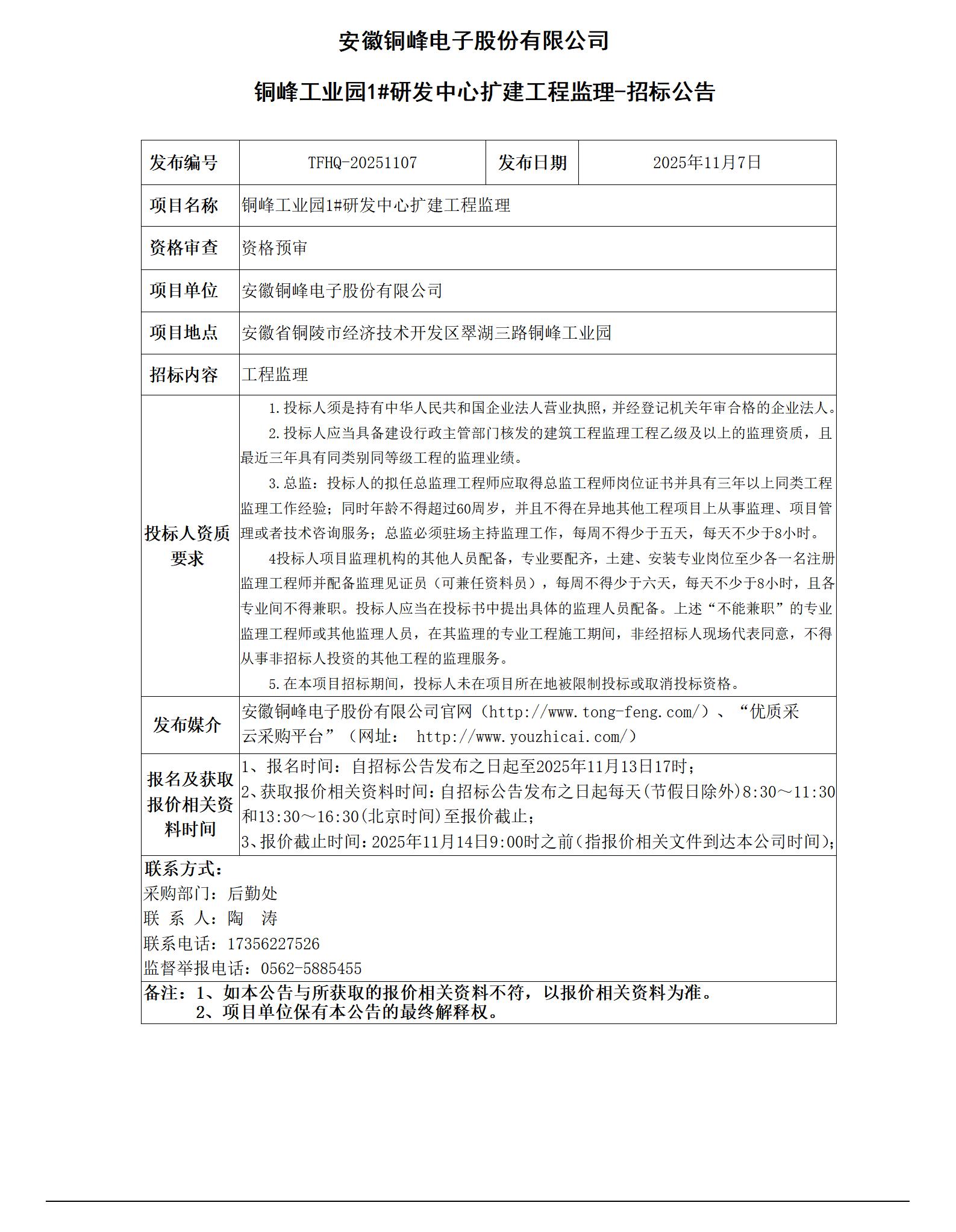 william威廉中文官网 (铜峰工业园1#研发中心扩建工程监理 招标公告)_01
