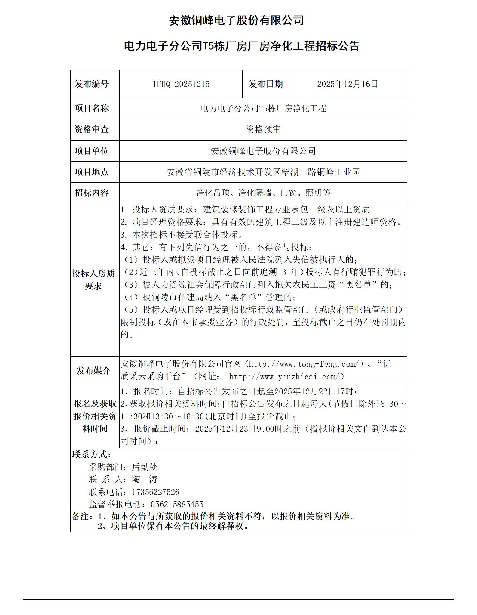 01william威廉中文官网 (电力电子分公司T5栋厂房净化工程 招标公告)_01