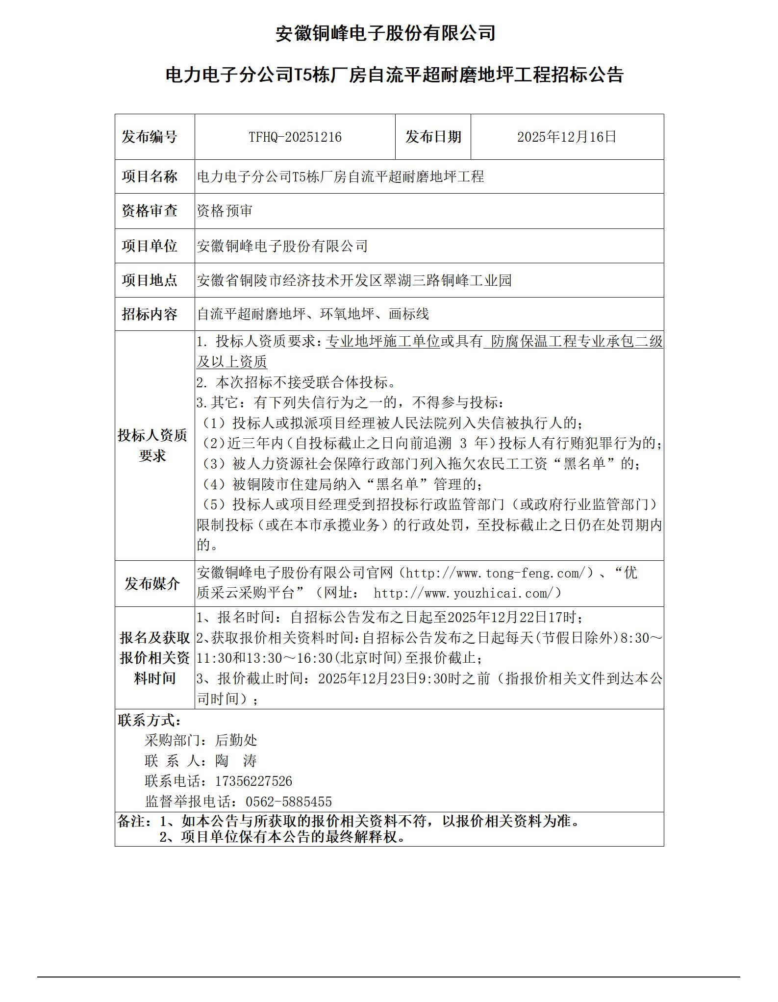 01william威廉中文官网 (电力电子分公司T5栋厂房自流平超耐磨地坪工程 招标公告)_01