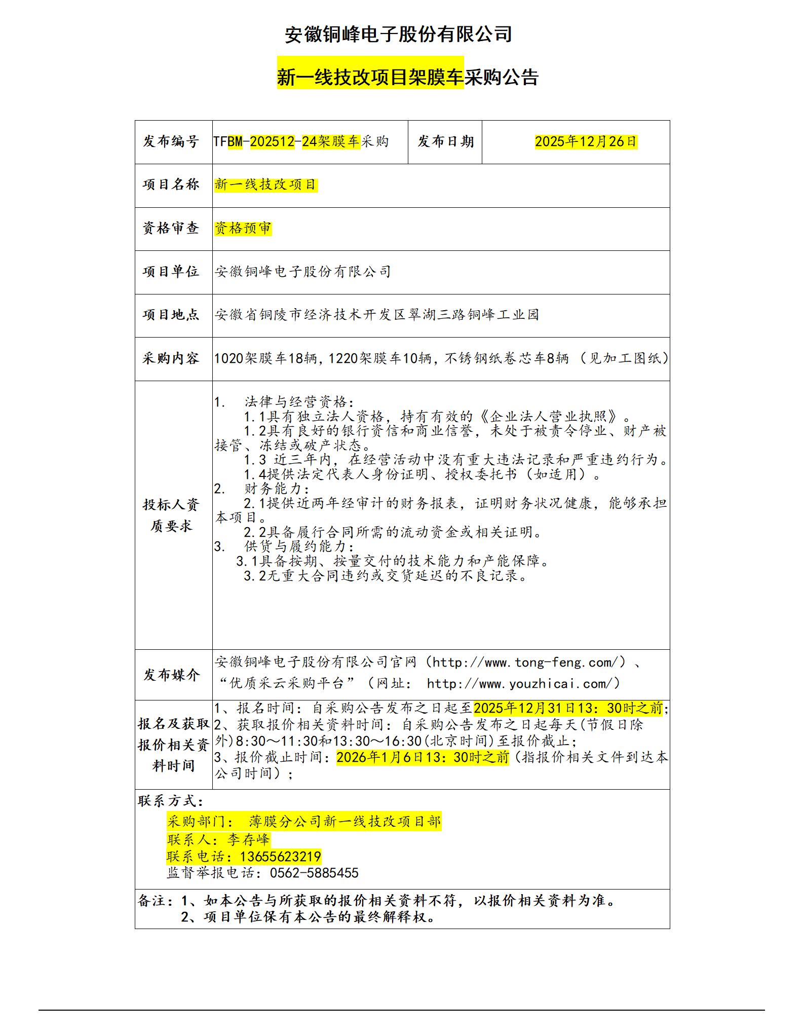 william威廉中文官网 (新一线架膜车采购招标公告)_01