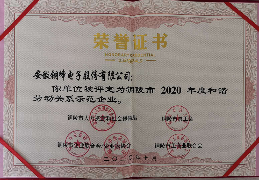 铜陵市和谐劳动关系示范企业