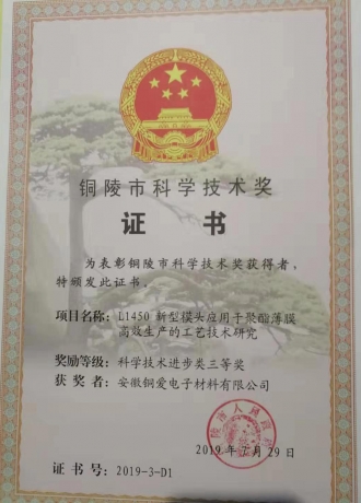 铜陵市科学技术三等奖