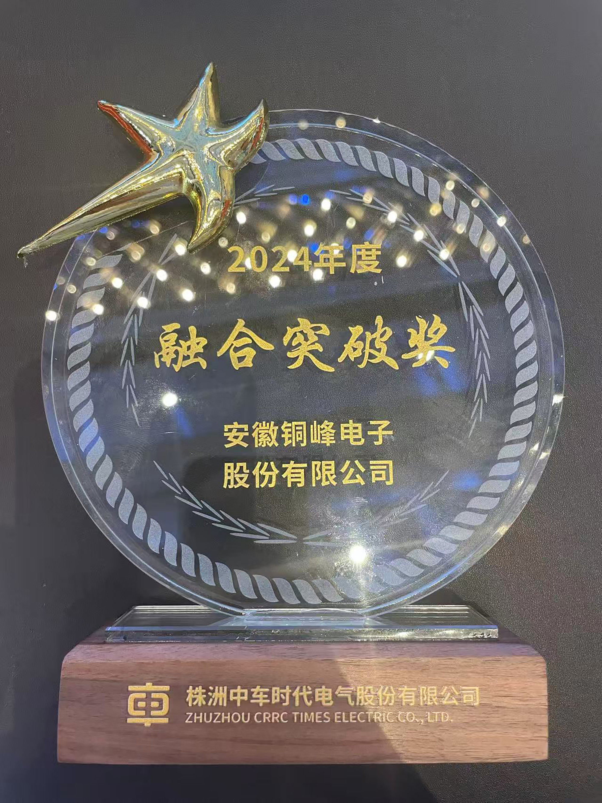 5月15日,在中车时代电气2024 年度供应商大会上,公司凭借卓越的产品性能、稳定的交付实力以及领先的技术融合能力,获评“2024 年度融合突破奖”,彰显了公司在高端装备与新能源领域协同创新的卓越成效,巩固了公司在其供应链中的战略地位,也标志着双方合作迈向新高度。